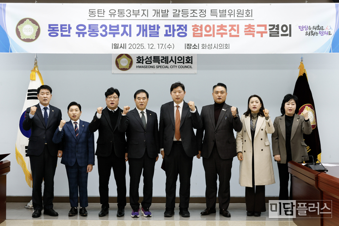 화성특례시의회 「동탄 유통3부지 개발 갈등조정 특별위원회」(이하 특별위원회)는 12월 17일 오전 9시30분 의회 대회의실에서 동탄 유통3부지 개발과정 협의추진 촉구결의를 진행했다.