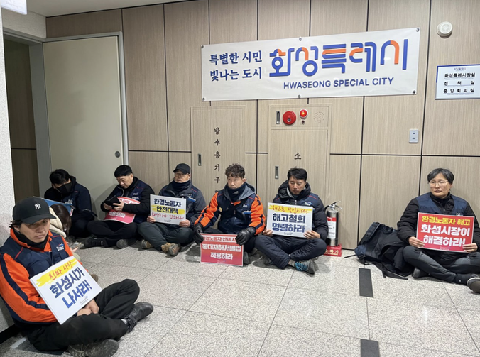 12월 23일 공공운수노조 경기지역지부 화성시환경지회의 간부 및 조합원 4명이 3개의 청소 업무 용역업체로부터 2025년 12월 31일 자로 계약이 종료된다는 해고 통보를 받았다. 업체 측은 1년 단위의 근로계약이 종료되었고, 계약 만료에 따른 계약 종료일 뿐 해고가 아니라고 주장하고 있다. 지회는 이에 대해 계약만료라는 탈을 쓴 부당해고이자 노조 탄압이라고 반박했다. 지회는 환경노동자의 실질 사용자인 화성시청에 부당노동행위를 자행하는 업체에 대한 시정 조치를 요청하고, 더는 묵과할 수 없는 지경에 이른 화성시 환경노동자의 노동안전과 생존권 문제에 화성시가 책임 있게 나설 때까지 투쟁할 것이라는 입장을 밝혔다.
