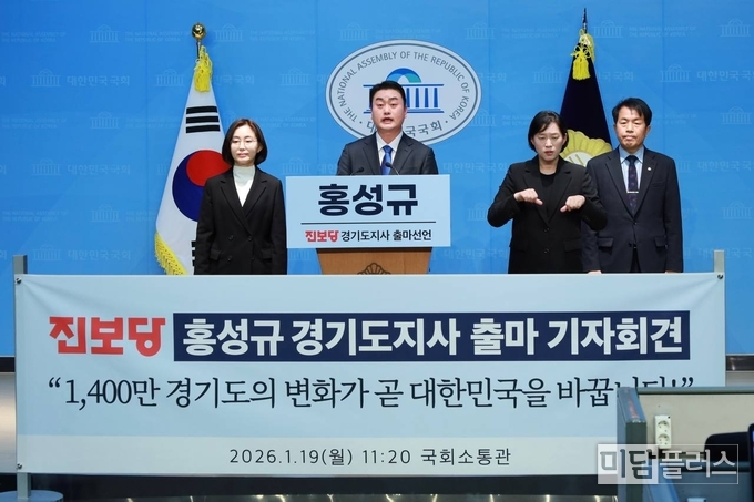 홍성규 진보당 경기도지사 후보가 1월 19일, 경기도의회 브리핑룸에서 '출마 기자회견'을 갖고 "새로운 경기도가 곧 새로운 대한민국"이라고 선언했다. 당원들의 직접 투표로 공직 후보자를 선출하는 진보당에서 경기도지사 후보를 선출한 것은 작년 9월 30일이다. 이후 약 110여일간 경기도 전역에서 꾸준히 도민들을 만나온 홍성규 후보의 공식 인사이자 공식 출마선언인 셈이다.