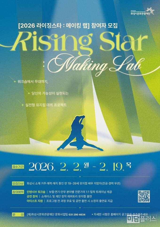 (재)화성시문화관광재단(대표이사 안필연)은 뮤지컬 분야의 신진 인재를 발굴하고 육성하기 위한 ‘2026 라이징스타: 메이킹 랩’의 오디션 참가자를 모집한다.