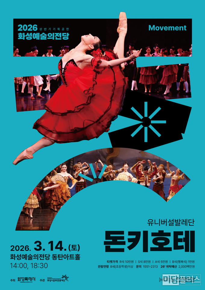 한편 유니버설발레단 <돈키호테> 공연 예매 및 자세한 사항은 화성시공연장 홈페이지(hac.hcf.or.kr)와 NOL티켓(tickets.interpark.com)을 통해 확인할 수 있다.