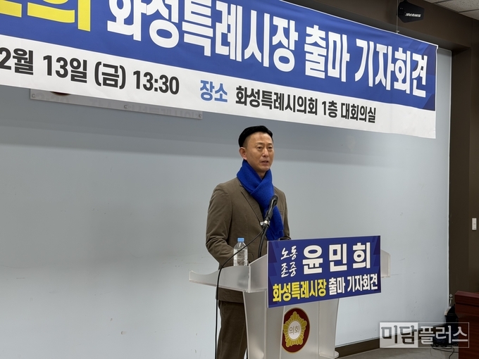 윤민희 화성특례시장 출마예정자 (더불어민주당, 전 기아자동차 화성지회장)가 2월 13일 금요일 오후 1시 30분 화성특례시의회 대회의실에서 공식 출마 기자회견을 열었다.