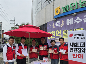 미담플러스 박상희 기자 국민의힘 화성'병' 당원협의회(위원장 최영근) 는 10월 13일 오후 병점역과 서동탄역 일대에서 서명운동을 두 번에 나누어 진행했다. 최영근 위원장은 “국민의힘과 대한민국을 사랑하는 국민은 반드시 사법부의 독립을 지켜내겠다. 총통·독재로 가고 있는 민주당의 횡포를 막아내겠다”라고 주장했다. 이번 서명운동은 9월 30일 1차로 진행됐고, 10월 13일은 오후 2시부터 4시까지 병점역 광장에서, 오후 5시부터 7시까지 서동탄역에서 이어졌다. 최 위원장은 과거 화성시장을 지냈으며 현재 국민의힘 화성'병' 당협위원장으로 활동 중이다.