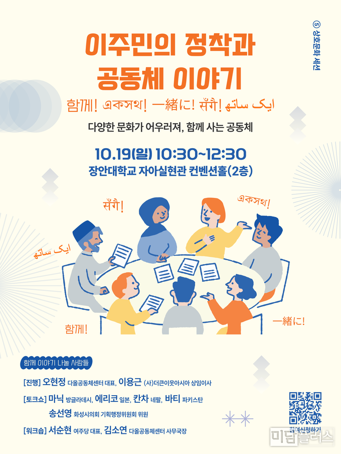 ③ 이주민의 정착과 공동체 이야기 (10.19. 10:30): 다문화 시대, 이주민과 비이주민이 함께 어우러져 사는 공동체 형성 방안을 다룬다.