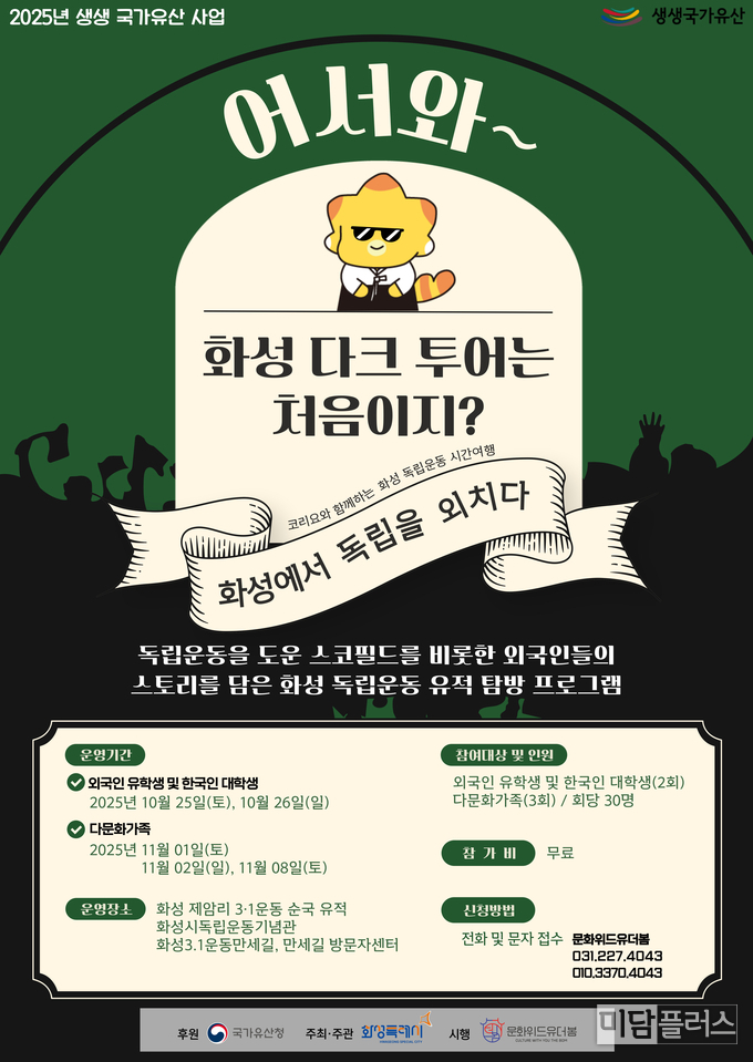 화성특례시(시장 정명근)가 10월 25일부터 ‘2025 우리고장 국가유산 활용사업(생생문화재)’의 마지막 프로그램인 ‘어서와~ 화성 다크 투어는 처음이지?’를 운영한다.