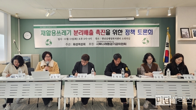 화성여성회(대표 한미경)는 11월 11일 향남읍행정복지센터 소회의실에서 ‘재활용쓰레기 분리배출 촉진을 위한 정책 토론회’를 개최했다.