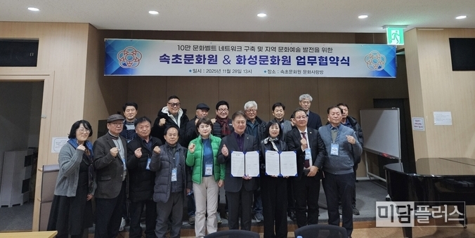 화성문화원(원장 유지선)이 11월 28일부터 29일까지 속초를 방문해 속초문화원(원장 김계남)과 ‘10만 문화벨트 네트워크 구축 및 지역 문화예술 발전’을 위한 업무협약(MOU)을 체결했다. 두 기관이 창립 60주년을 맞이한 해에 이뤄진 이번 협약은 동서 지역 간 문화교류의 새로운 출발점을 열었다.