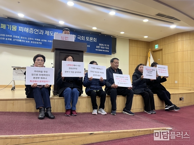 12월 10일 오전 10시, 서울 여의도 국회의원회관 제2소회의실에서 '산업폐기물 피해 증언과 제도 개선을 위한 국회 토론회’가 열렸다. 이번 행사는 국회의원 송재봉, 공익법률센터 농본, 환경운동연합 주관으로 국회의원 이학영, 안호영, 문진석, 김원이, 박해철, 송재봉, 이용우, 공익법률센터 농본, 환경운동연합, 국회시민정치포럼이 주최했다. 또한 전국에서 모인 20 여개의 매립장, 소각장, 각종 비상대책위원회 등이 버스를 대절해 모여 회의실을 가득 매웠다.