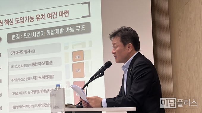 비대위는 "원래 주거시설이 없던 업무지구에 '앵커시설을 짓겠다’며 주상복합을 끼워 넣더니, 이제 와서 앵커시설은 쏙 빼고 오피스텔까지 몰래 넣어 주택만 짓겠다는 것은 기획된 사기극"이라며 ▲12일 기습 공고의 원천 무효 ▲업무지구 원안 유지를 요구했다.