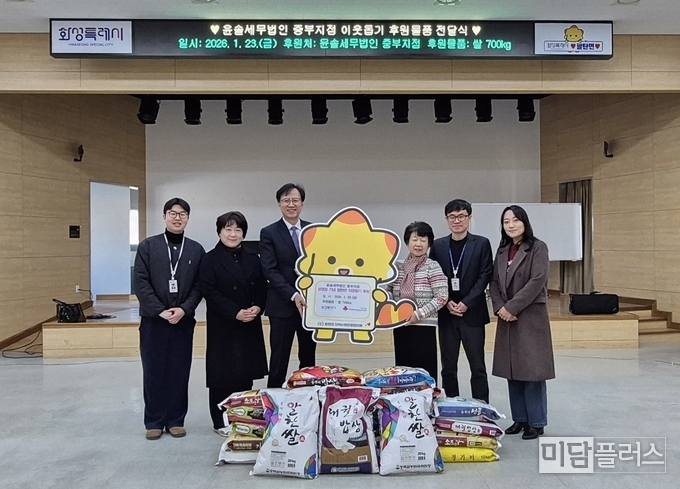 윤솔세무법인 중부지점이 1월 23일 설 명절을 앞두고 쌀 700kg을 화성특례시 팔탄면에 기부하며 지역 사회 나눔 실천에 나섰다.