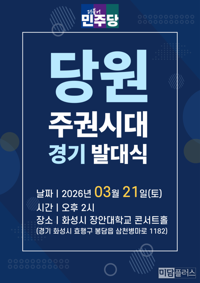 더불어민주당이 ‘당원이 주인인 정당’이라는 민주적 가치를 경기도에서 실현하기 위해 정책적 발판 마련과 함께 본격적인 광폭 행보에 나선다. ‘민주당 당원주권시대 준비위원회’는 오는 3월 21일 오후 2시, 화성특례시 봉담읍 장안대학교 콘서트홀에서 ‘당원주권시대 경기발대식’을 개최한다고 밝혔다. 이번 행사는 김경희 화성특례시장 출마예정자가 준비위원장을 맡아 진두지휘한다.