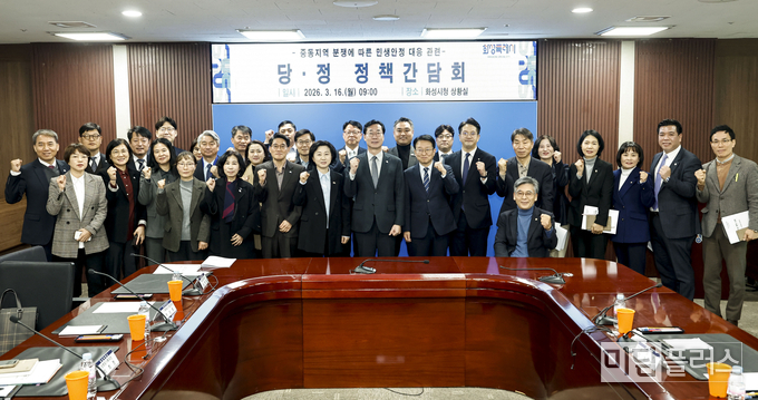 화성특례시(시장 정명근)는 3월 16일 시청 상황실에서 중동지역 분쟁 장기화에 따른 지역경제 영향 최소화를 위해 ‘민생안정 대응 당정 정책간담회’를 개최했다.