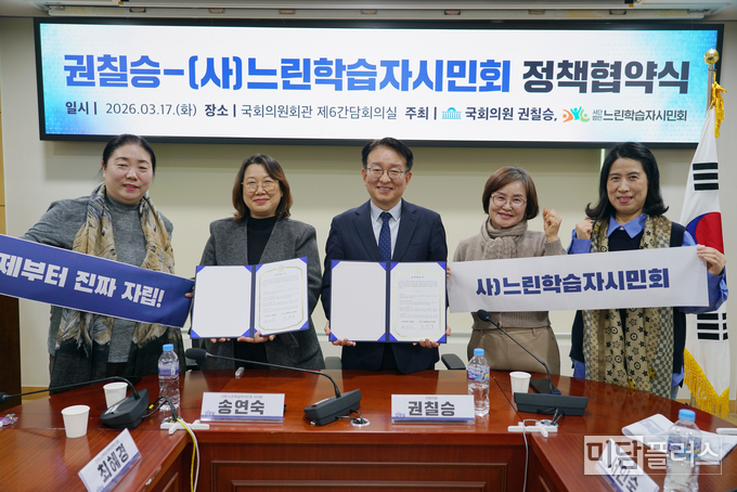 더불어민주당 경기도지사 경선 후보 권칠승 국회의원(화성'병')이 3월 17일 국회의원회관에서 사단법인 느린학습자시민회와 느린학습자 정책 협약식을 개최했다. 느린학습자를 위한 공교육 체계를 바로 세우고, 고용ㆍ노동 생태계 구축을 약속했다.