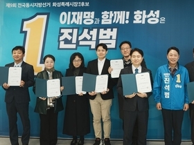 미담플러스 박상희 기자 진석범 화성시장 예비후보가 3월 17일 화성특례시 화옹지구 경마공원 유치협의회 발대식에 참석해 화옹지구 경마공원 유치 추진에 적극 힘을 보태겠다는 뜻을 밝혔다. 이번 발대식은 화성시 서신면에서 열렸으며, 화성시 농업인단체와 화성시 승마협회를 중심으로 구성된 화옹지구 경마공원 유치협의회가 공식 출범하는 자리로 마련됐다. 행사에는 지역 농업인과 승마 관련 단체, 주민들이 참석해 화옹지구 경마공원 유치 필요성과 지역 발전 방안 등에 대해 의견을 나눴다. 진 예비후보는 앞서 이전이 예정된 과천 경마공원을 화성시 화옹지구에 유치하겠다는 공약을 발표한 바 있으며, 이를 통해 화성 서부권 지역 발전과 관광·레저 산업 활성화, 지역경제 활성화를 추진하겠다는 구상을 밝혀왔다. 축사를 통해 “경마공원 유치를 제안했는데 정치권과 지역사회가 뜻을 함께해 주셔서 이렇게 화옹지구 경마공원 유치협의회가 발대하게 된 것을 진심으로 축하드린다”고 말했다. 이어 “지역 발전을 위해 힘을 모아주신 농업인단체와 승마협회 등 지역사회에 감사드린다”며 “저 역시 시민 여러분과 함께 화옹지구 발전을 위한 노력에 힘을 보태겠다”고 밝혔다. 마지막으로 “지역의 미래 발전을 위해서