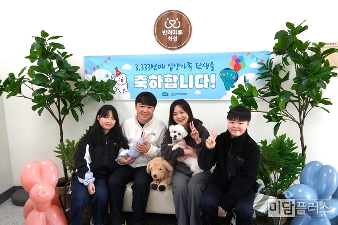경기 서부권을 대표하는 반려동물 테마파크 ‘반려마루 화성’에서 3,333번째 입양가족이 탄생했다. 2013년 ‘경기도 도우미견나눔센터’로 처음 문을 연 이후 13년 만에 거둔 성과로 ‘반려마루 화성’은 그동안 유기견 3,068마리, 유기묘 265마리를 입양시켰다.