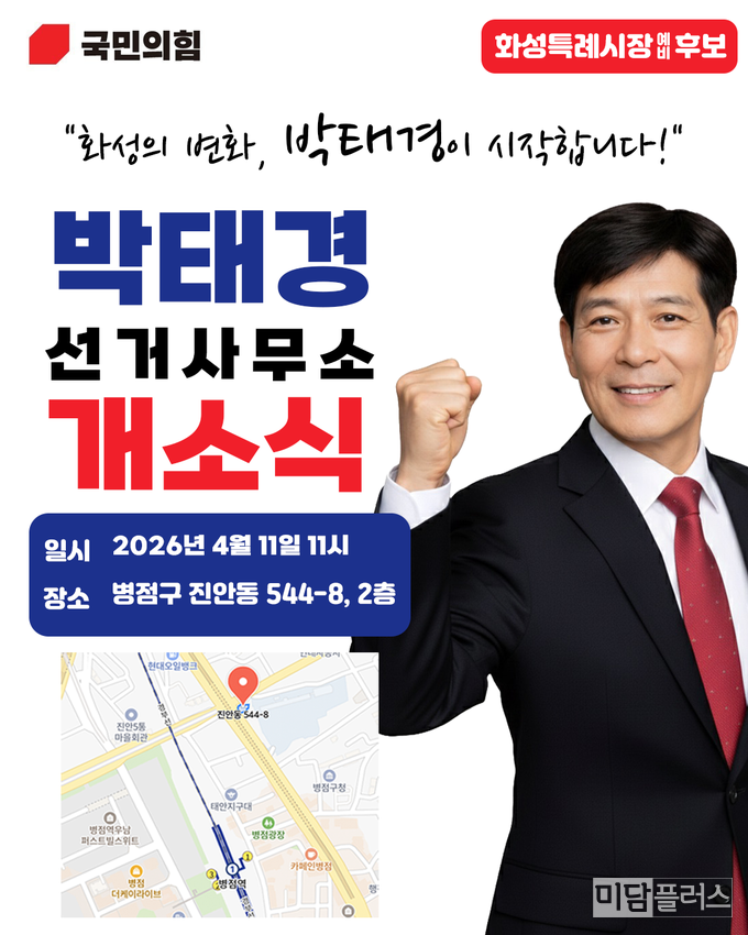 선거사무소 개소식을 성공적으로 마친 박태경 예비후보는 이번 행사를 기점으로 시민들과의 소통 접점을 더욱 넓혀갈 계획이다. 박 후보 측은 발로 뛰는 현장 중심의 선거 운동을 통해 화성시민의 목소리를 정책에 적극적으로 반영하겠다는 포부를 밝혔다.