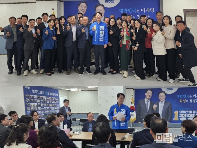 더불어민주당 정명근 화성특례시장 후보는 4월 15일 중소기업지원 자문단(위원장 김장현)과 소공인기술혁신협의회(회장 강성만) 회원 30여 명과 간담회를 갖고 "기업인들이 대한민국을 이끌어 갈 수 있도록 '기업하기 더 좋은 도시' 건설에 더욱 매진하겠다"라고 밝혔다.
