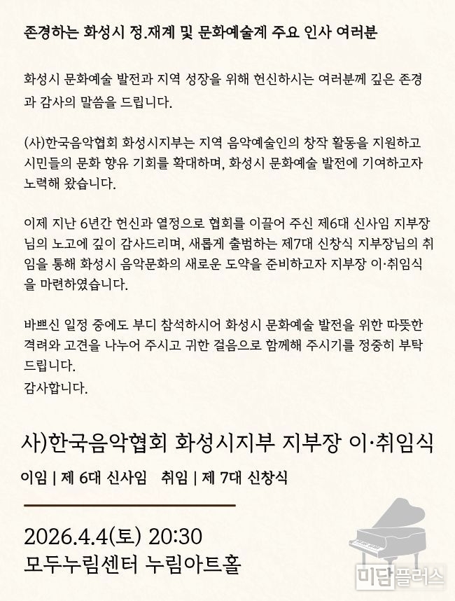 [포토뉴스] 난파의 선율 콘서트 & (사)한국음악협회 화성시지부장 이취임식
