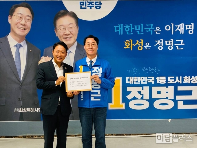 진석범 화성특례시장 예비후보는 23일 경선에서 승리한 정명근 예비후보와의 회동에서 화성 발전을 위한 3대 핵심 공약을 전달했다.