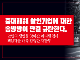 [성명] 노동자 23명을 죽여도 가볍게 처벌받는 나라. 대한민국이 정말 기업 하기 좋은 나라임을 재차 확인시킨 아리셀 항소심 재판부의 반사회적 판결을 강력히 규탄한다. 4월 22일 수원고등법원 형사1부는 아리셀(주) 폭발 참사와 관련하여 1심에서 징역 15년을 선고받았던 박순관 대표이사에 대해 징역 4년, 그의 아들 박중언 총괄본부장에 대해 징역 7년으로 대폭 감경하는 판결을 선고했다. 아리셀 참사는 2024년 6월 리튬전지 공장에서 발생하여 23명의 노동자가 사망하고 8명이 부상을 입은 중대 산업재해이다. 사망자 23명 중 20명이 파견노동자였고, 다수가 입사 3~8개월 이내의 노동자였다. 비상구 미비 등 기본적인 안전조치조차 이행되지 않은 사실이 확인되었다. 이는 명백히 기업의 이윤 추구 과정에서 안전을 외면한 구조적 참사이며, 사실상 기업에 의한 ‘살인’이다. 아리셀은 산업안전보건법 위반이 147건에 달했으며, 안전·보건 교육 미실시, 건강 검진 미실시 등으로 약 17억 9천만 원의 과태료가 부과된 바 있다. 이러한 중대한 위반 사실을 고려하여 1심은 중대재해처벌법 시행 이후 최고 수준의 형량을 선고한 바 있다. 그러나 항소심 재판부는 ‘대법원 양형 기